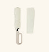 The umbrella is small enough for my tote and gorgeous! I love the color and the ingenuity of the black mind. This umbrella opens with just the push of a button. I LOVE IT!!! I will be purchasing another in the future. The handle even has a built in clip so you can clip it to any bag especially if your hands are full. Hit the button from the top, the umbrella will expand and open. Hit the button from the bottom, and the umbrella will close. I love it! The only downside is the umbrella case needs to be a bit wider to fit the umbrella.